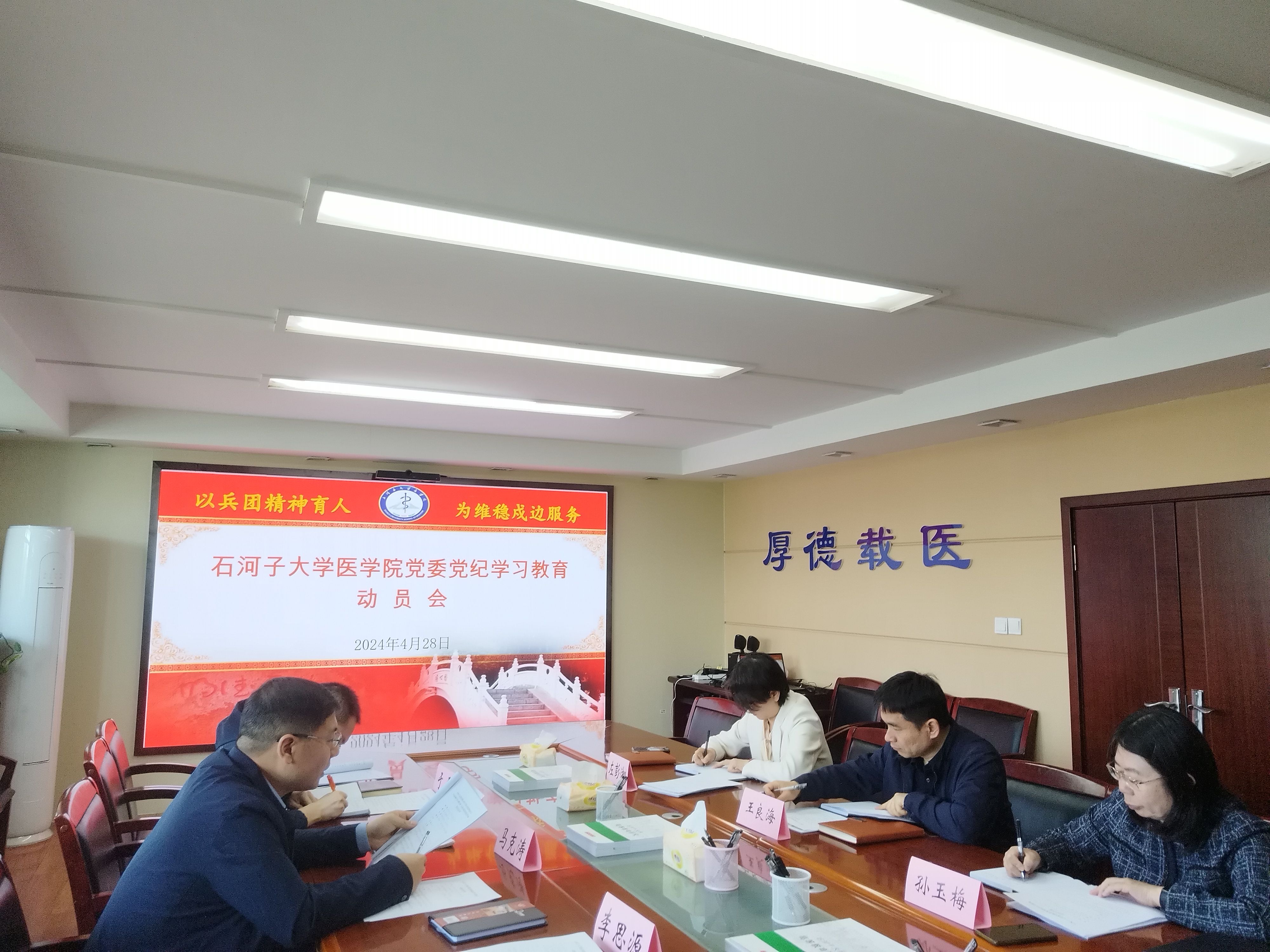 党委在杏5楼409会议室召开了党纪学习教育动员会,学院领导于磊、李思源、王良海、左彭湘、孙玉梅参加会议,学院党委副书记、院长马克涛主持会议。