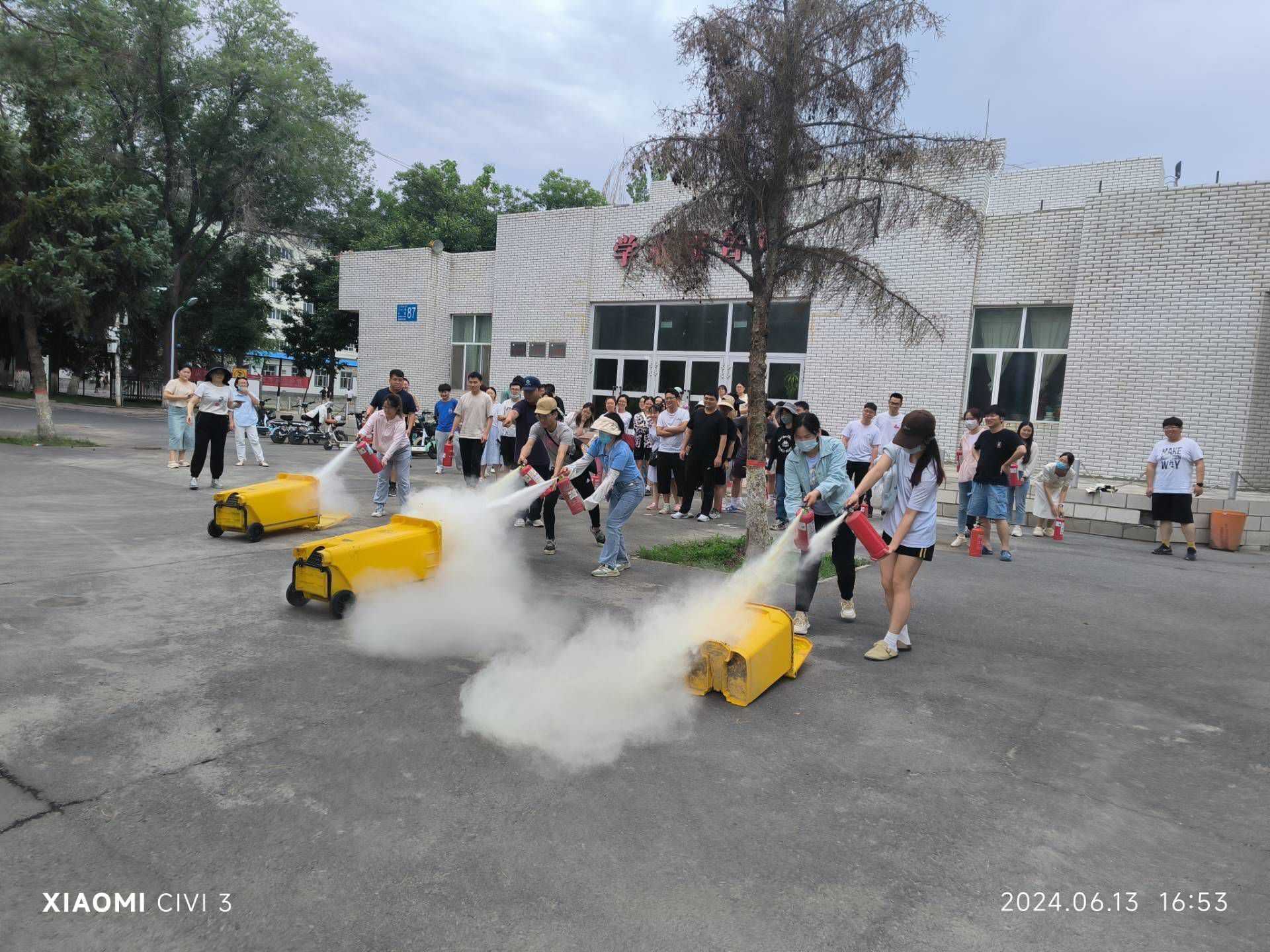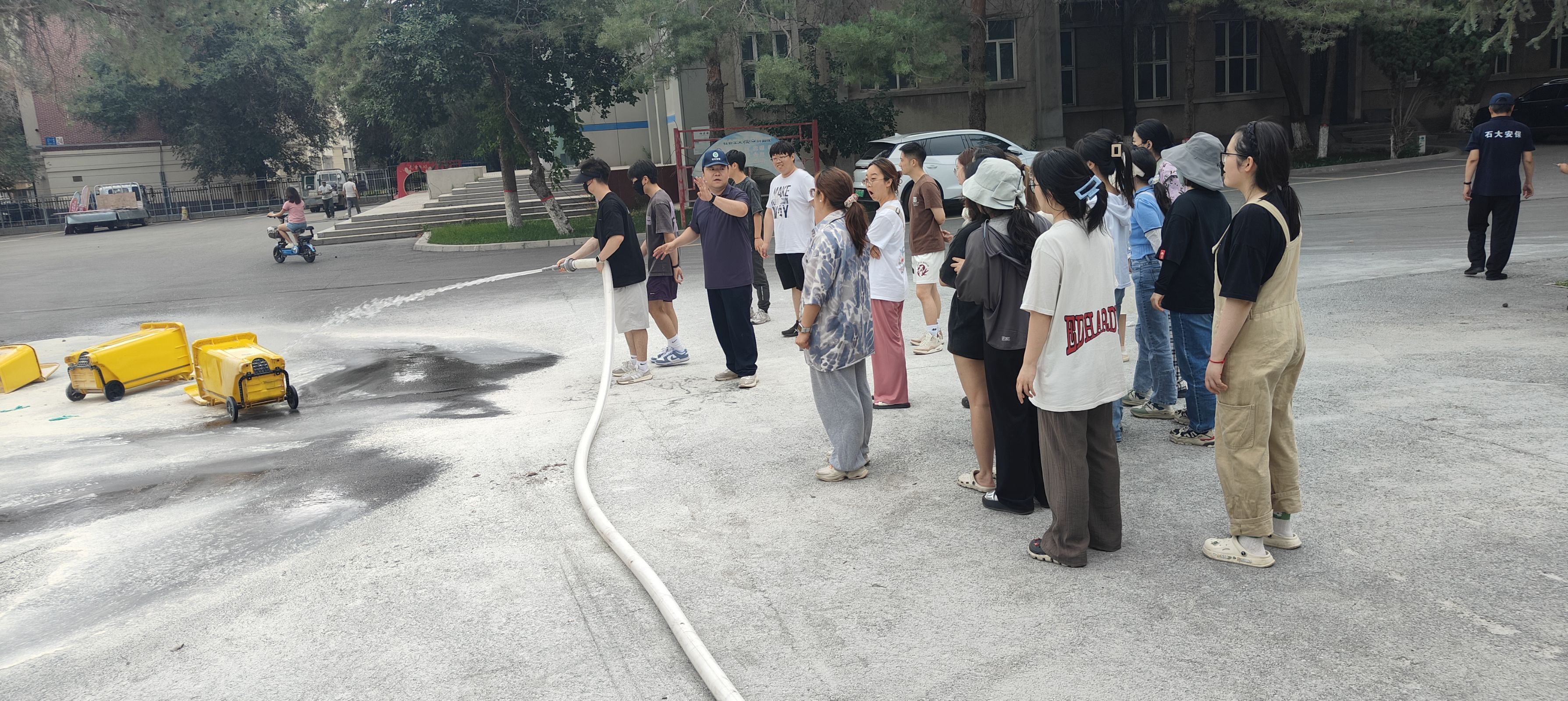 户外,师生们分组进行了灭火器、消防栓的实操训练,充分学习并掌握基本消防器材的使用方法。