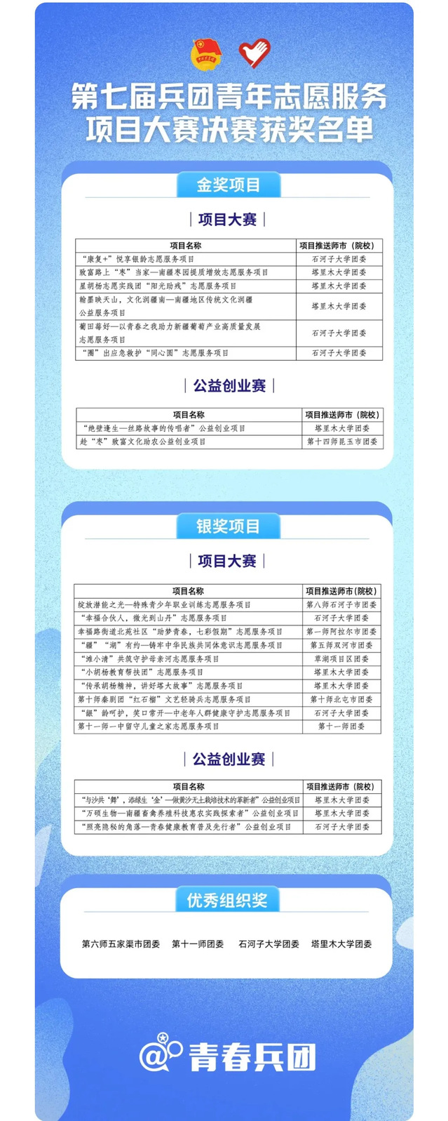 9月4日-5日,第七届兵团青年志愿服务项目大赛决赛暨志愿服务交流会在五家渠市圆满闭幕。番茄小说 选送的三个志愿服务项目经过激烈角逐,最终喜获两金一银的优异成绩,展现了番茄小说 青年志愿者的卓越风采和专业能力。