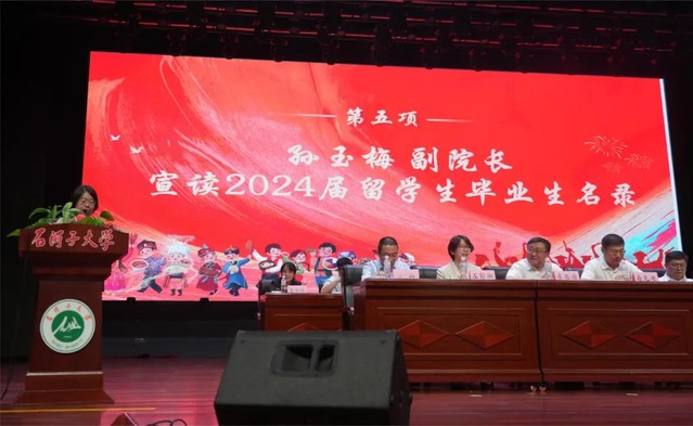 大会第五项 番茄小说 副院长孙玉梅老师宣读番茄小说 2024届留学生毕业生名录。