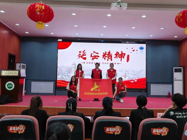活动尹始,宣讲团播放了关于延安历史和延安精神的短片,该片详细讲述了延安在中国革命中的重要地位以及延安精神的主要内容:坚定正确的政治方向、解放思想实事求是的思想路线、全心全意为人民服务的根本宗旨、自力更生艰苦奋斗的创业精神。