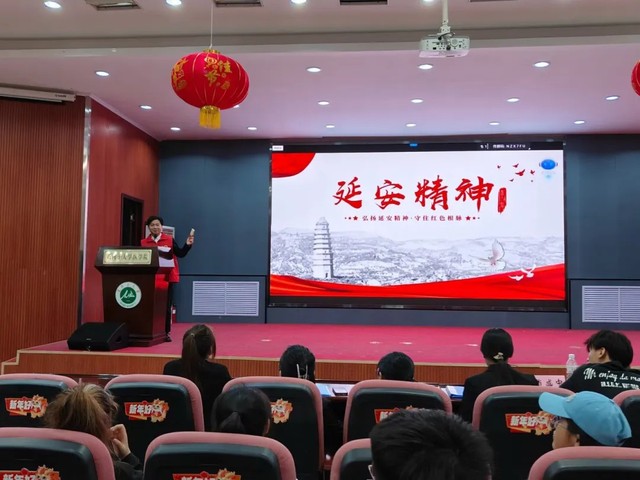 随后,宣讲团队长赵恒向在场的师生们详细介绍了延安的地理位置、历史背景及其独特的文化和产品。他讲到,延安不仅有着丰富的历史文化资源,还有着许多优质的农产品和手工艺品。例如,延安苹果以其甜美的口感和脆嫩的质地闻名遐迩,延安红枣则因含有丰富的营养价值而受到消费者的青睐。