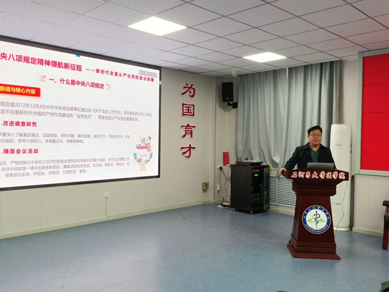 筑牢思想防线 弘扬清风正气——学院党委书记张青同志为医学教学实验中心党支部宣讲深入贯彻中央八项规定精神学习教育专题党课