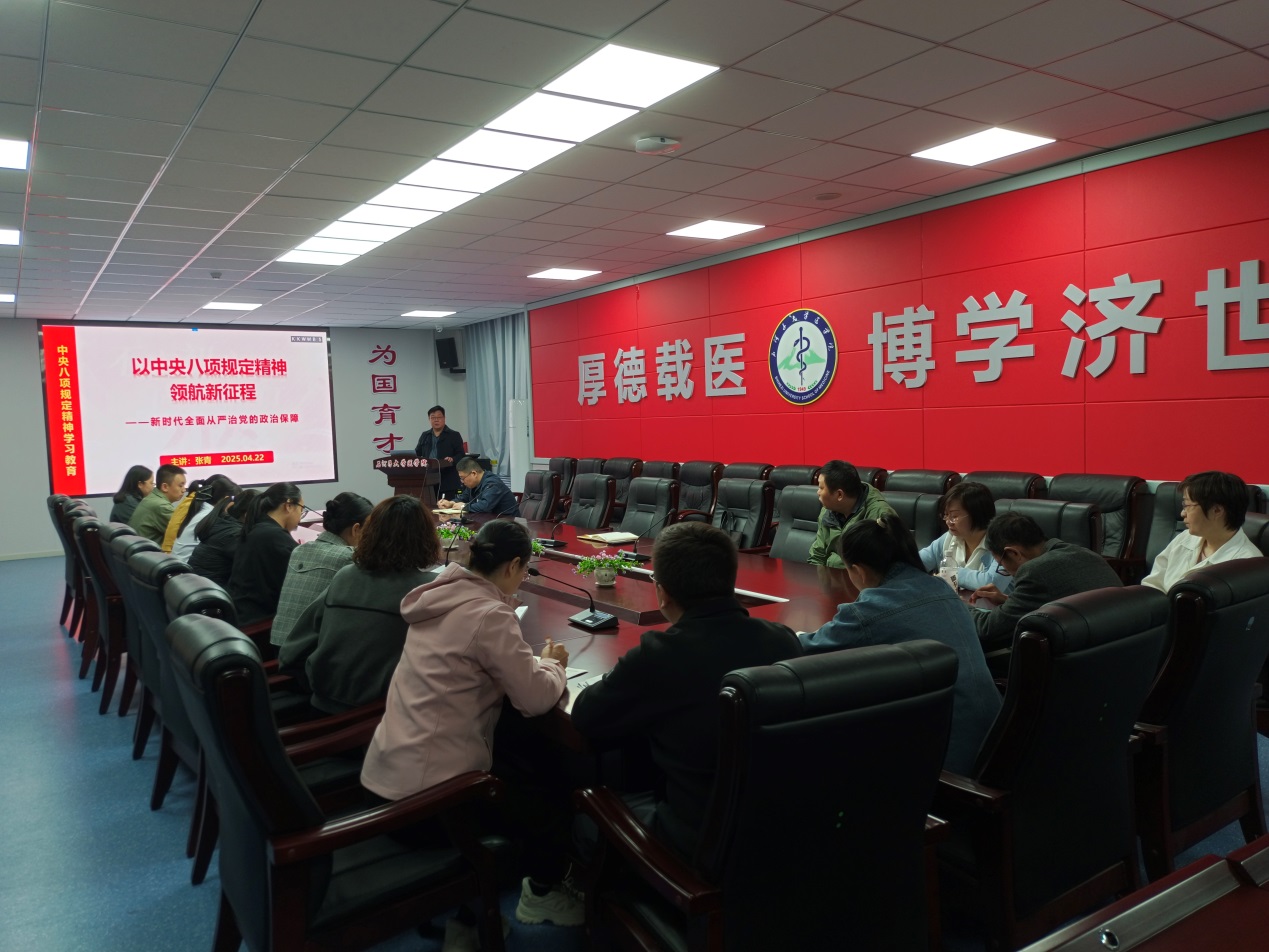 为深入学习贯彻党的二十大精神,持续推进全面从严治党向基层延伸,2025年4月22日上午,学院党委书记张青同志深入医学教学实验中心党支部,专题宣讲中央八项规定精神,实验中心全体老师17人参加了学习并与学院领导进行了座谈交流。