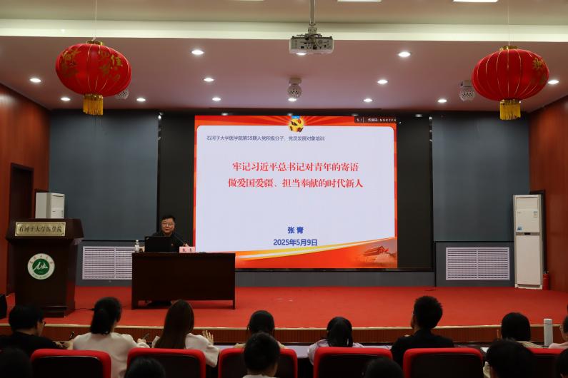 随后,张青以《牢记习近平总书记对青年的寄语 做爱国爱疆担当奉献的时代新人》为主题,为学员们带来了开班第一讲。他围绕习近平总书记对青年的殷切期望,结合学院人才培养目标与学生发展实际,深入解读了新时代青年的责任与担当,激励同学们把个人理想与国家发展紧密相连,在医学领域发光发热,成为德艺双馨的医学人才。