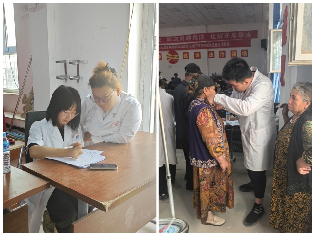 到达51团后,团队立即投入全民健康体检准备工作,配合第三师总医院51团分院实地考察和布置体检现场。期间,师生团队在51团6连、8连、和谐社区等13个连队和社区开展全民体检工作,完成了1500余名群众的体检和信息录入工作。同时,师生团队进行了心血管疾病风险预测、中老年人群认知障碍筛查调研和健康科普宣讲,让当地百姓充分了解心血管和认知障碍等疾病相关知识,动员及时进行防治。