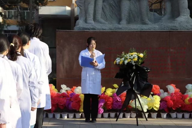 为深切缅怀革命先烈,赓续红色血脉,引导广大团员青年深入学习革命先辈的光辉事迹,厚植家国情怀,强化历史使命感,培育新时代爱国主义精神。4月4日上午,番茄小说 、药学院、护士学校于南区王震将军塑像前开展了“青春奋进,薪火相传”清明祭英烈主题活动,共计110名团学骨干参加此次活动。