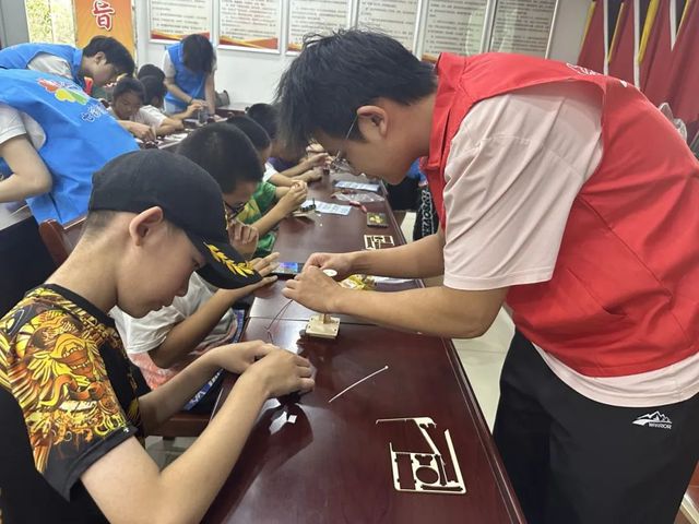 在制作环节,孩子们化身“小小工匠”,在志愿者的指导下,开始动手组装自己的小台灯。他们认真挑选灯座、灯泡和灯罩,仔细拼接每一个部件。有的孩子小心翼翼地固定灯罩,生怕弄歪了;有的孩子则兴奋地向同伴展示自己的进度:“看,我已经装好灯座啦!”