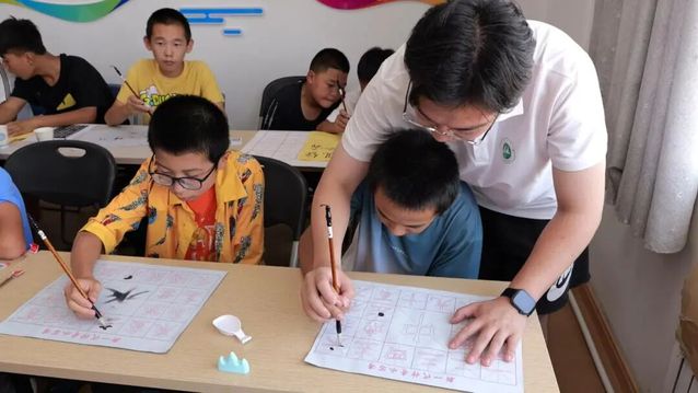 在书写过程中,老师强调“头正、身直、臂开、足安”的坐姿标准,要求眼距桌面30cm、胸距桌沿8cm,以预防脊柱侧弯与近视。同时传授“吸气预备-呼气书写-句读换气”的呼吸节奏同步法,配合悬腕练习,帮助小朋友培养肢体协调性。课程采用“3分钟静心操-5分钟单字精练-10分钟段落书写”的阶梯式训练,融入正念冥想引导,助力小朋友提升专注力,建立“心静-身正-字美”的书写心理关联。