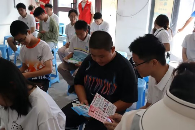 活动现场,实践团成员身着整齐服装,将精心设计、内容丰富的禁毒防艾宣传三折页,递到每一位同学手中。团队成员高晨伟,手持三折页,认真地向身边的青少年讲解,提醒大家警惕伪装巧妙的“上头电子烟”和“聪明药”,告诫青少年千万不能因好奇尝试;团队成员向当地居民科普了艾滋病通过性、血液、母婴传播的知识,分享了不共用针具等预防措施,还强调了吸毒者共用针具会加大艾滋传播风险,号召大家远离毒品就是预防艾滋。同学听得十分入神,收获满满。