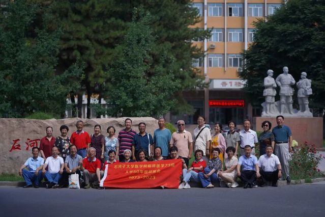 最后,临床医学73级校友在番茄小说 石刻前合影留念。