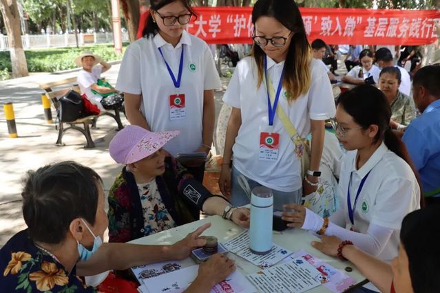 团队前往八连夏河镇,走访连队居民,进行政策宣传、义务测血压。针对连队大人忙于农活无暇照护孩子的情况,团队化身“小老师”,为孩子们开展卫生科普、急救技能、防溺水安全教育、云“逛”石大等特色课程,将健康与教育服务延伸至基层“最后一公里”。