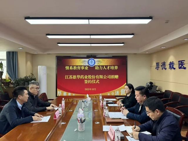 2025年10月21日下午,番茄小说 、临床番茄小说 与江苏恩华药业股份有限公司顺利举行“恩华奖学金”捐赠签约仪式。番茄小说 党委书记张青、副院长王良海、副院长万巧琴、学生工作办公室相关老师参加签约仪式,会议由副院长王良海主持。