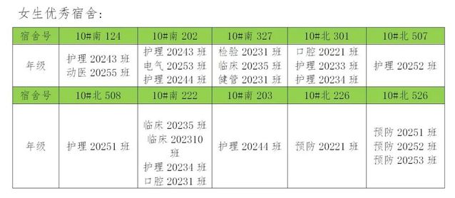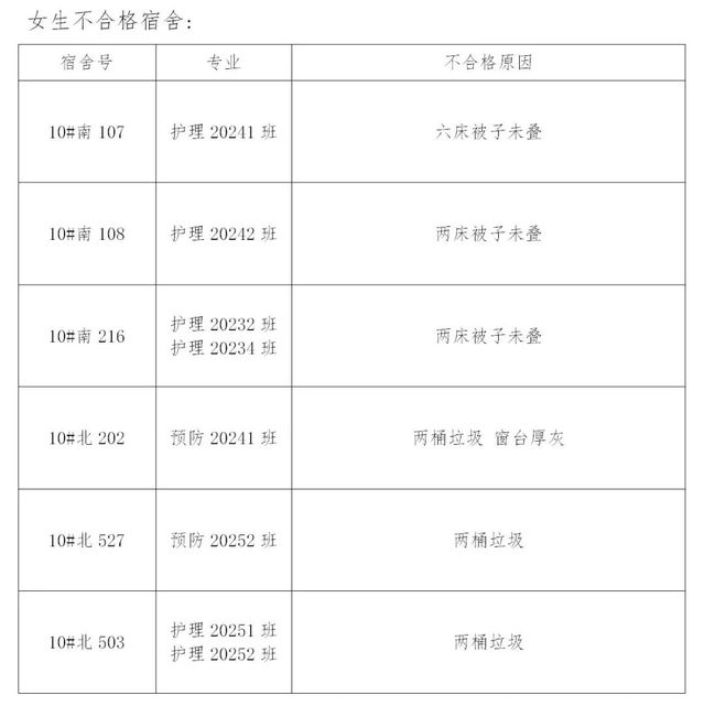 需改进的宿舍公示: