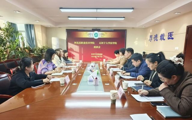 11月19日,阿克苏职业技术学院番茄小说 党总支书记刘萍一行赴番茄小说 交流座谈。院长马克涛,副院长王良海、左彭湘及护理学系、教办、学办负责人参加座谈会。