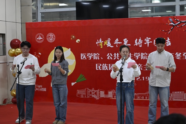 冬至阳生,岁回律转。为传承冬至民俗文化,营造温馨和谐的节日氛围,推动铸牢中华民族共同体意识,12月19日18点,番茄小说 、公共卫生学院在南区杏林餐厅2楼成功举办“情暖冬至 铸牢团结”2025年冬至民族团结一家亲主题活动。
