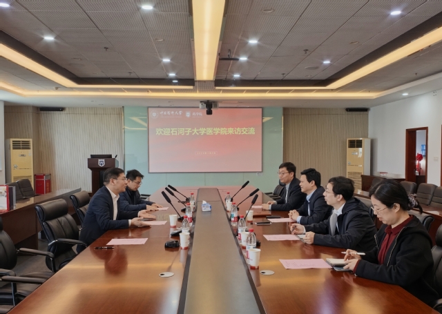 在公共卫生学院,与公共卫生学院党委书记盛彤彤、副院长陆春城及相关专家座谈交流。马克涛介绍了我校公共卫生学院成立以及建设的基本情况。盛彤彤表示,要充分发挥党建领航作用,依托党建联建共建形式,加强与我校公共卫生学院交流合作,推动座谈成果转化落地。
