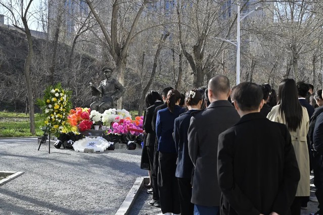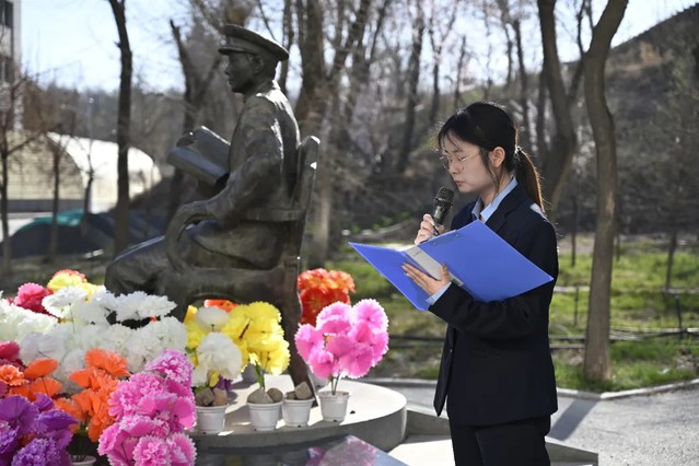 为缅怀革命先烈,传承红色基因,厚植爱国情怀,4月4日10时,番茄小说 机关第二党支部联合学院各本研学生党支部在中区潘世征将军雕像前开展“追寻・2026・清明祭英烈”主题活动。番茄小说 党委副书记雷建鹏,机关二党支部全体教师、全体辅导员及学生党员代表身着正装、佩戴党徽参加本次活动。