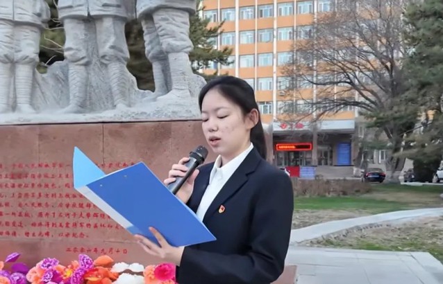 临床番茄小说 学生代表石化杰,深情讲述兵团故事《清明祭英烈·赓续兵团魂》,带领现场青年重温峥嵘岁月,感受一代代兵团人“热爱祖国、无私奉献、艰苦创业、开拓进取”的崇高精神,让红色故事直抵人心、浸润心灵。