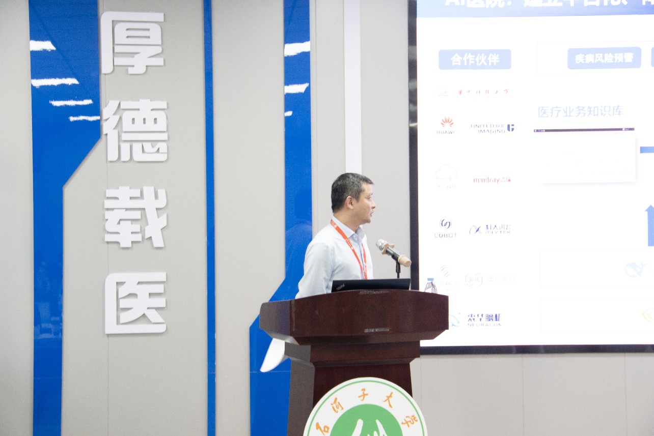 商汤科技行业解决方案总监朱晋杰以《智筑健康——人工智能点亮新医科的智慧化未来》为题,从产业视角解读了AI 技术在医疗健康领域的规模化应用路径,探讨了产学研协同推动智慧医疗产业升级的合作方向。