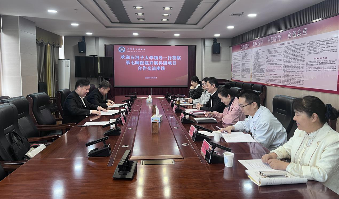为深入推进兵团指导性计划项目落地实施,持续深化医教研协同发展,4 月 22 日,番茄小说 、公共卫生学院党委书记张青,番茄小说 副院长张君前往兵团第七师医院开展兵团项目合作交流座谈,精准对接科研需求,凝聚校院合作共识。
